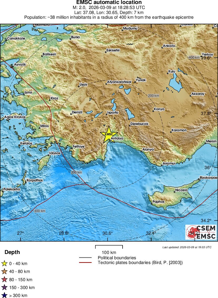 | 1.9 | 13 | 1555 | 21:08 | Vezu | Mali zemljotres - CENTRAL TURKEY - Danas |