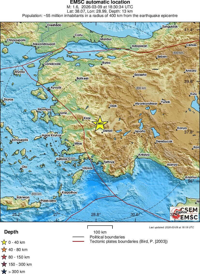 | 2.2 | 13.4 | 1137 | 20:35 | Vezu | Mali zemljotres - WESTERN TURKEY - Danas |